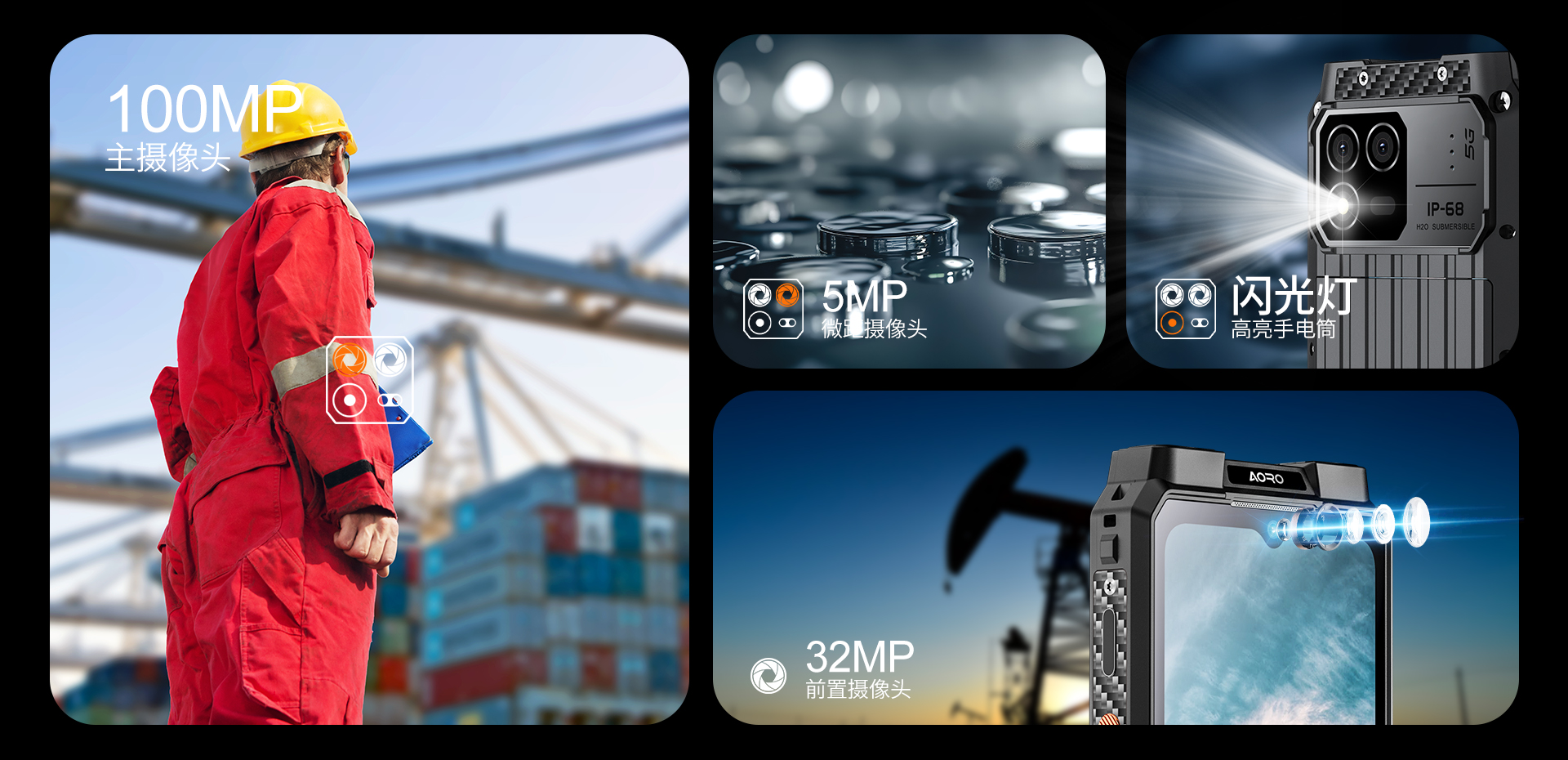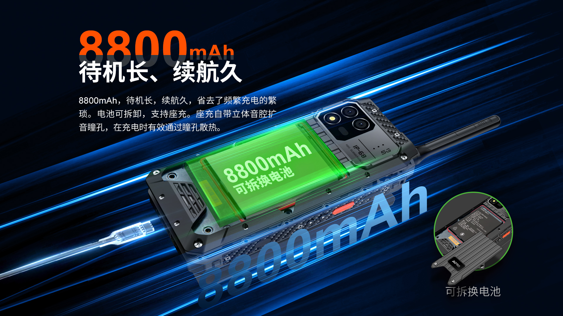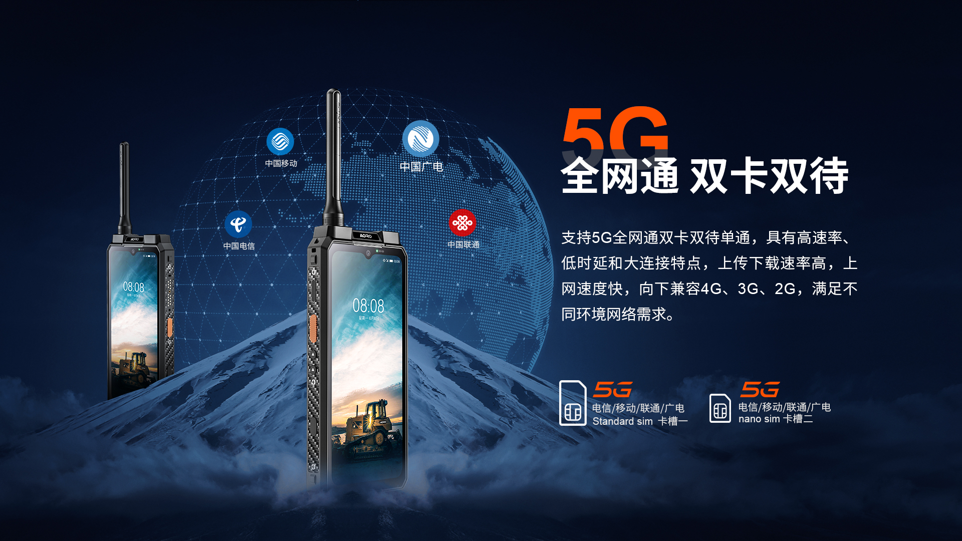 5G对讲+DMR/PDT集群对讲+PoC工业智能手机 | PTT+POC双对讲按键 | 5G全网通|广电5G|电信5G|移动5G|联通5G | 双卡双待 | Android 12系统 | 屏幕英寸 6.583 FHD 1080*2408 | 天玑1080 2.6GHz 八核 | 机身内存 16GB RAM+1TB ROM | 扩展内存支持(2TB) | 聚合物锂离子电池8800mAh(可拆换电池)超长待机 | 前置32MP 后置100MP+500W微距+夜视/热成像(二选一) | IP68/IP69K 防水|防震|防尘认证 1.5米水下浸泡40分钟测试 | NFC | OTG功能 | 前侧面纹识别 | 座充 | 红外热成像/红外夜视(可选配)