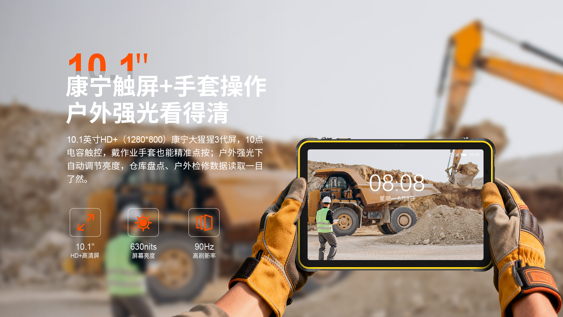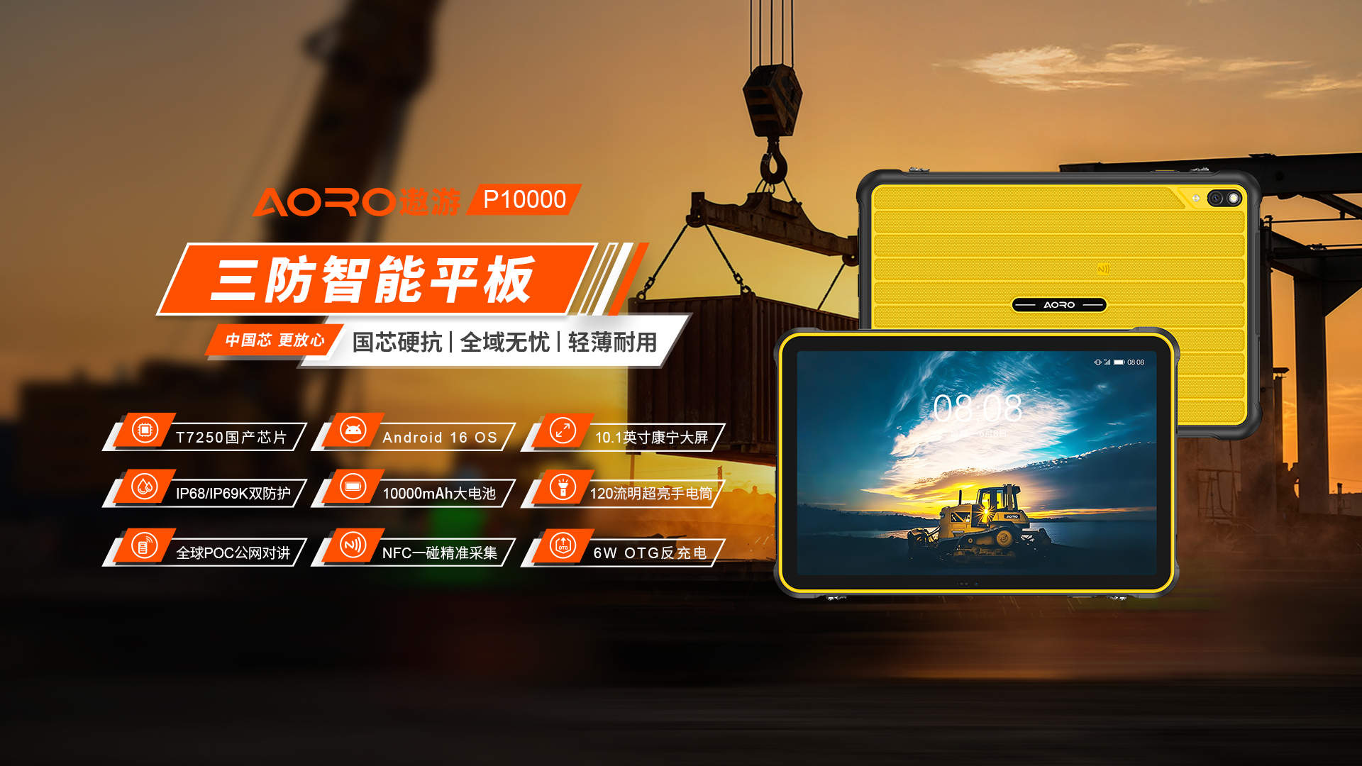 POC公网一键全球对讲 | 4G全网通|电信4G|移动4G|联通4G | 双卡双待 三卡槽(支持热插拔) | Android 16系统 | 屏幕10.1英寸 HD+ 1280*800 康宁大猩猩玻璃 | 展锐T7250 1.8GHz 八核 国产芯片 | 机身内存 8GB RAM(8GB动态内存)+128GB ROM | 扩展内存支持(1TB) | 聚合物锂离子电池10000mAh 超续航、长待机| 前摄800万 后摄4800万 | IP68/IP69K双重防护等级 防水|防震|防尘 | NFC | OTG功能 | 支持内窥镜 | 内置手电筒(120流明,一键手电筒)| 蓝牙5.2 | 四模定位GPS+GLONASSS+BDS+Calieo