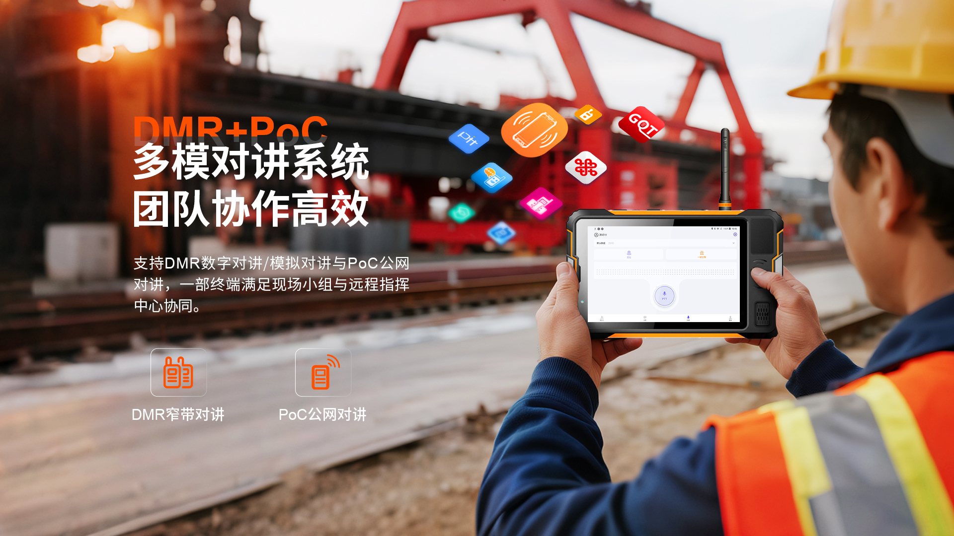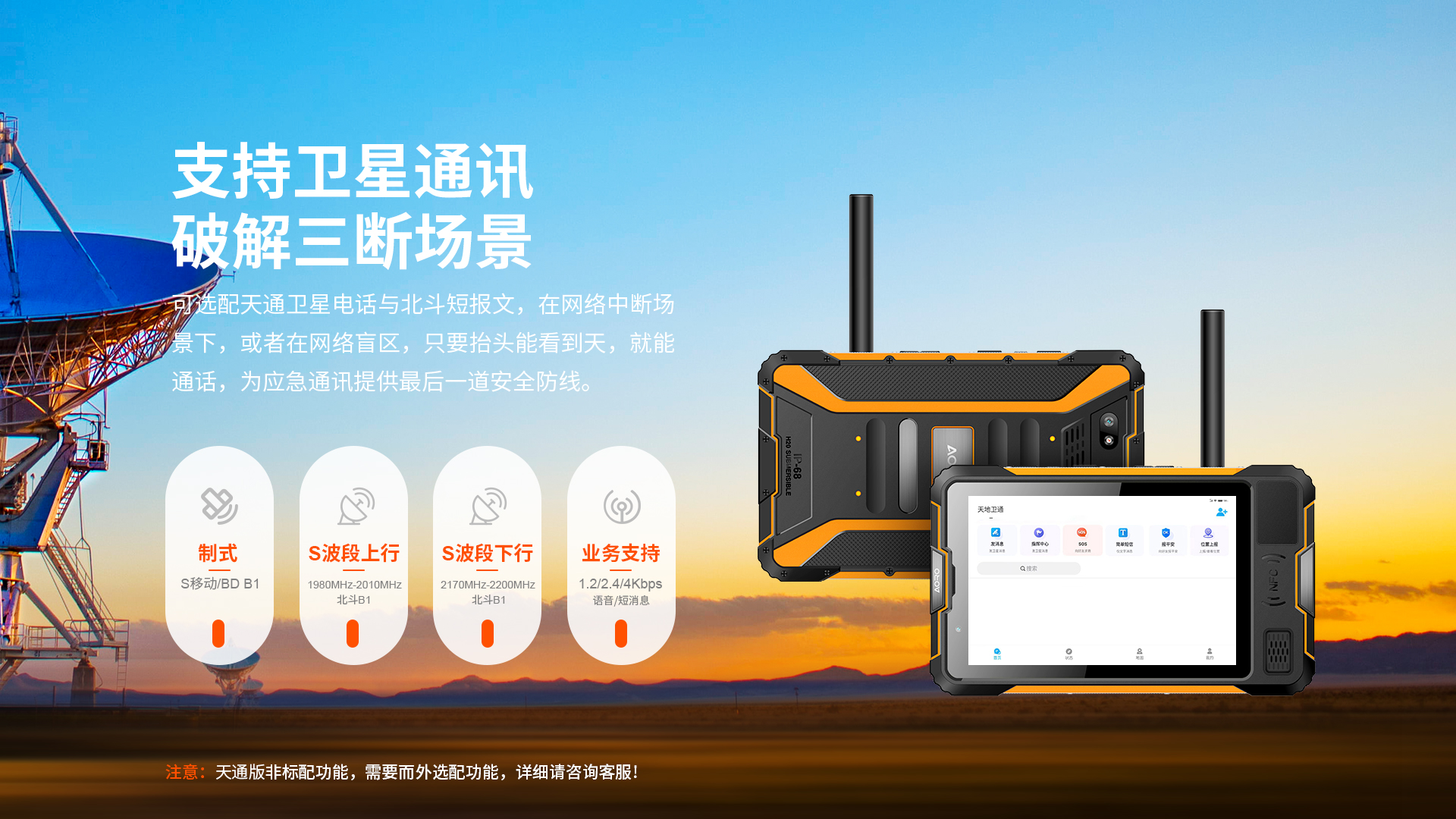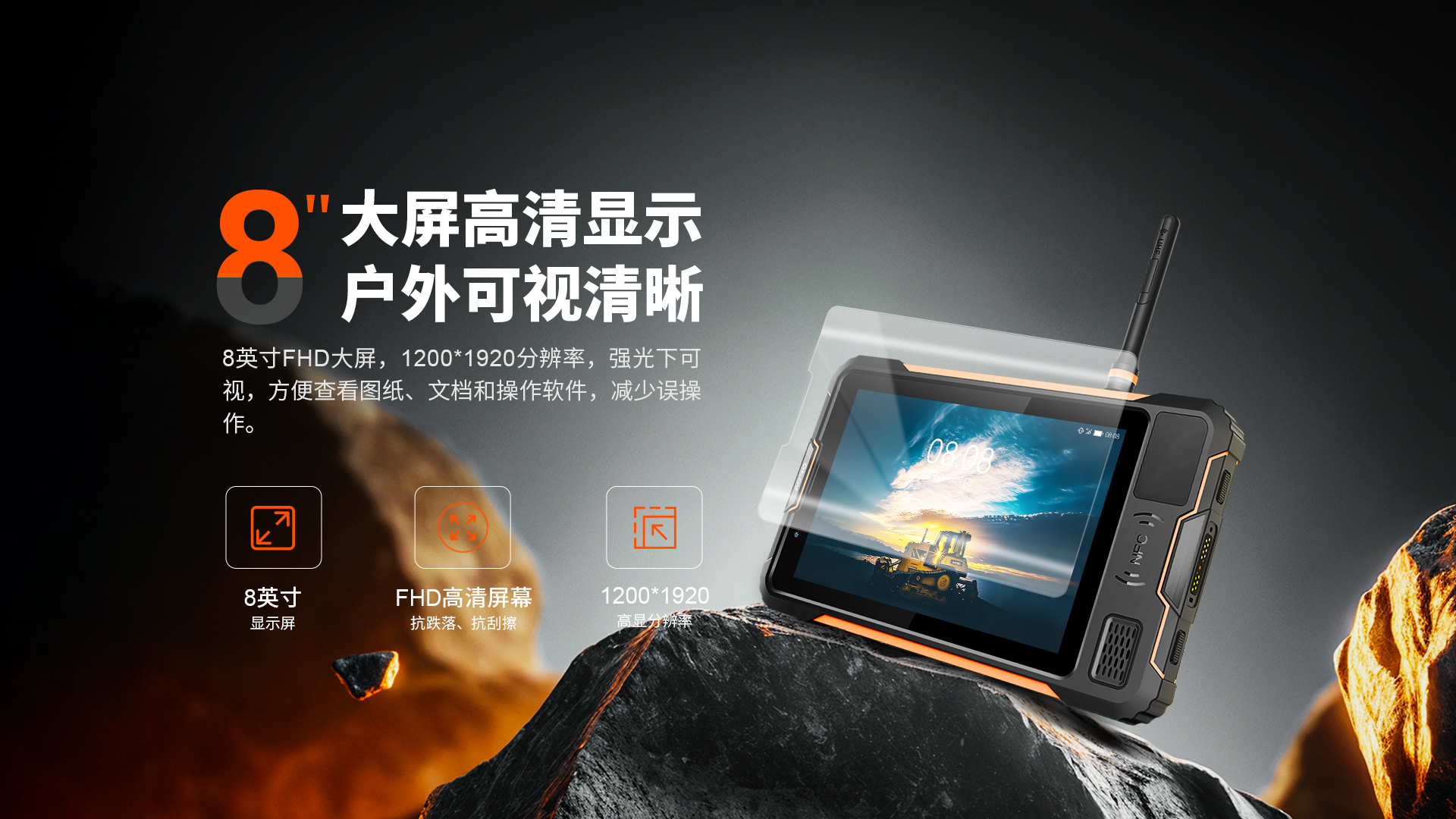 数据采集多模融合通讯智能终端 | 5G全网通 | 双卡双待 | Android 12系统 | 屏幕英寸 8英寸 FHD 1200*1920 | MT6877(天玑900) 2.4GHz 八核 | 机身内存 8GB RAM+256GB ROM | 聚合物锂离子电池8000mAh 超长待机 | 前置800万 后置4800万 | IP68防水|防震|防尘认证 | NFC | OTG功能 | DMR窄带对讲、POC公网对讲、PDT集群对讲、单北斗、2D扫描头、RTK高精度定位、天通卫星电话、北斗短报文(多功能可选配)